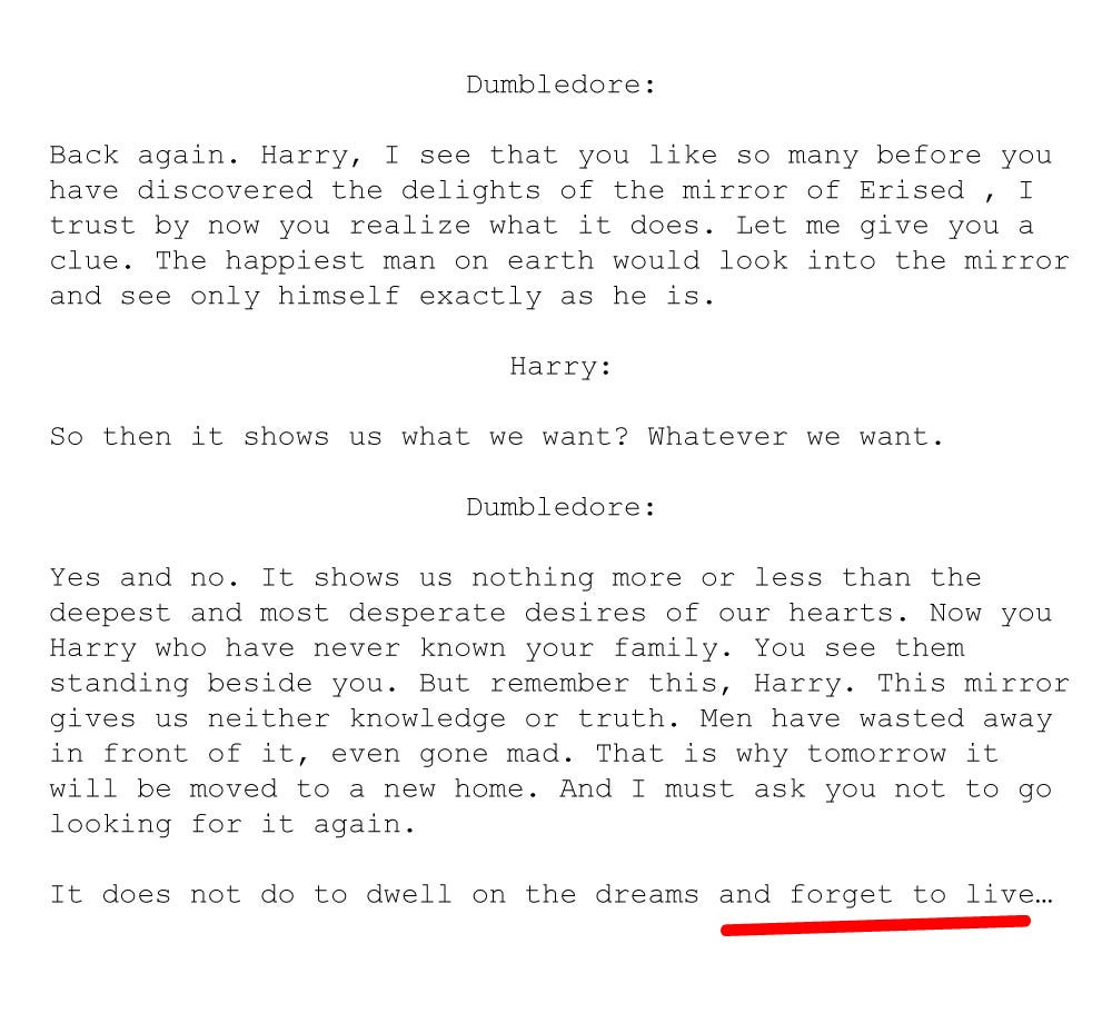 The book Harry Potter and the Philosopher's Stone, by J. K. Rowling which features this scene about the Mirror of Erised, was written between June 1990 and 1995 – before the internet was used by everyone, over a decade before the iPhone and social media were invented! If you listen to the words they are more relevant now, than ever.